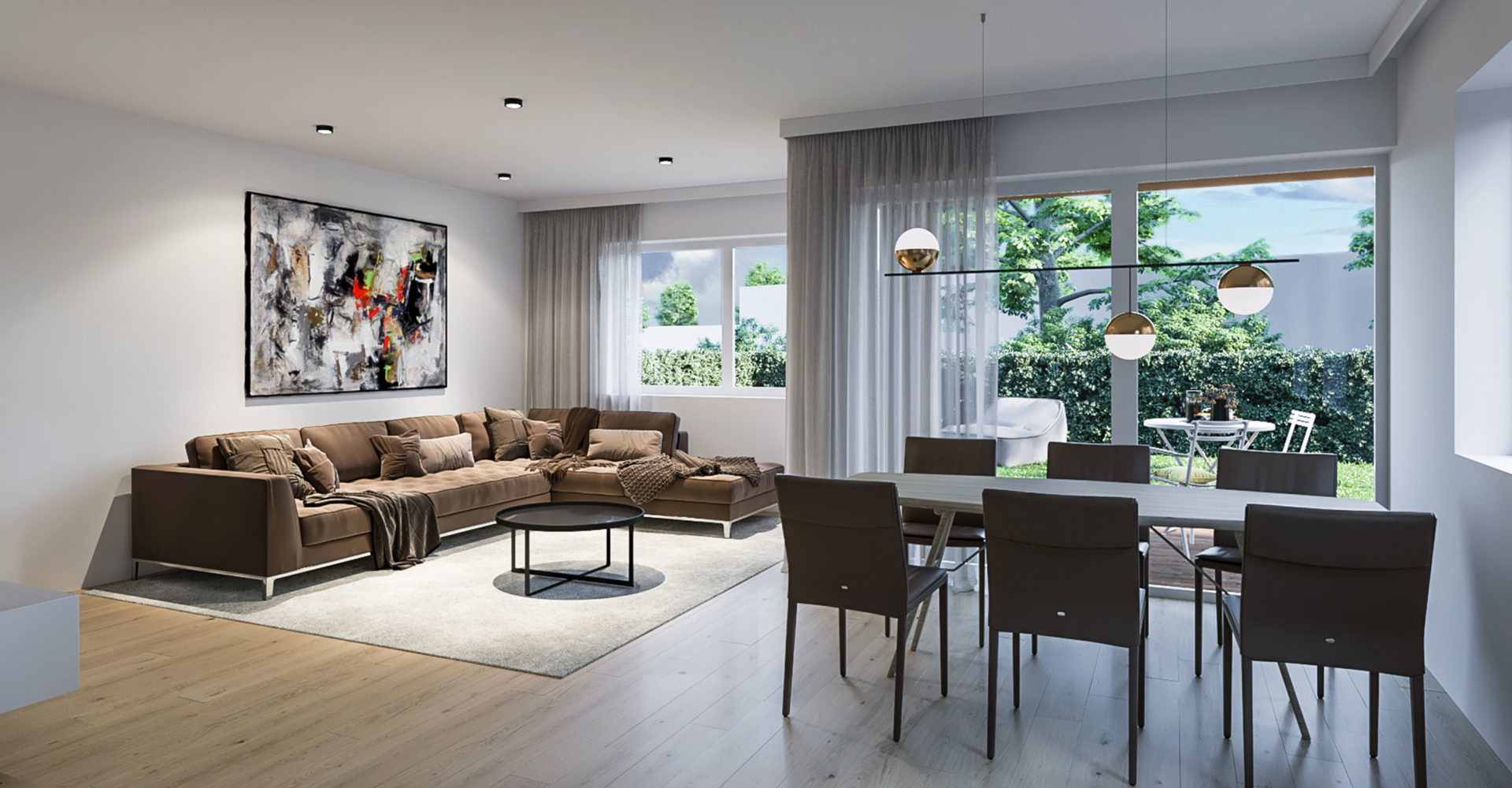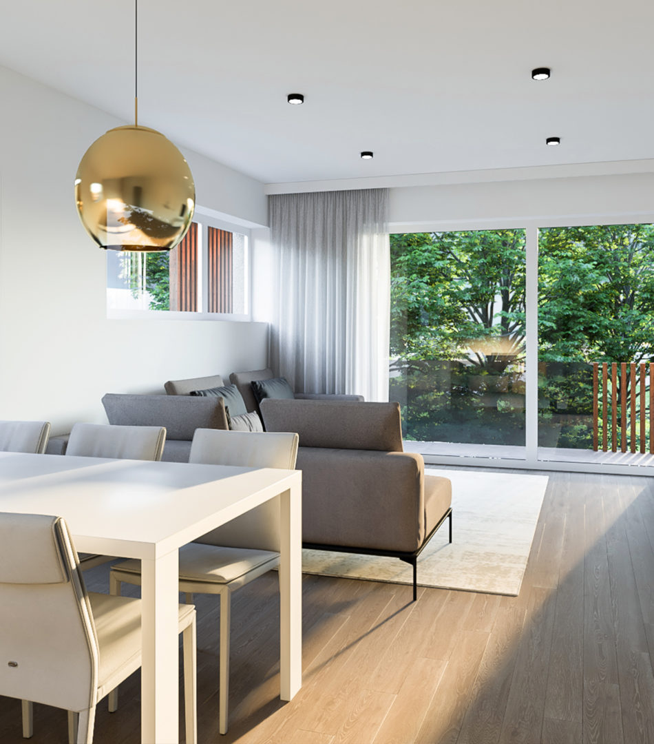 Stadt. Land. Plus. Das moderne Wohnquartier mit 33 Eigentumswohnungen, 10 Reihenhäusern und 10 Doppelhäusern ist ein Sinnbild für flexibles Wohnen. Verschiedene Raumkonzepte mit Wohnflächen zwischen 57 m2 und 132 m2 bieten dabei für jedes Lebens- und Familienmodell die optimale Wohnlösung.